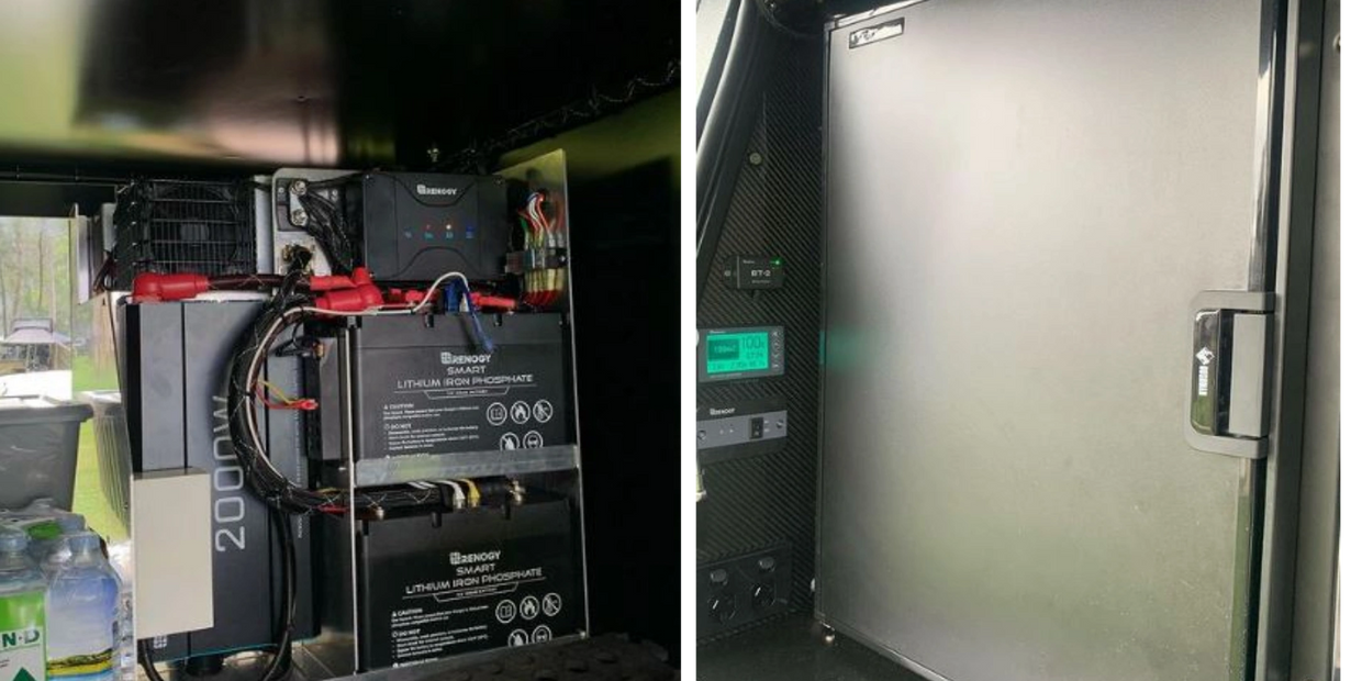 This package is a 85L bushmans fridge with our bracket and full lithium battery system from renogy.